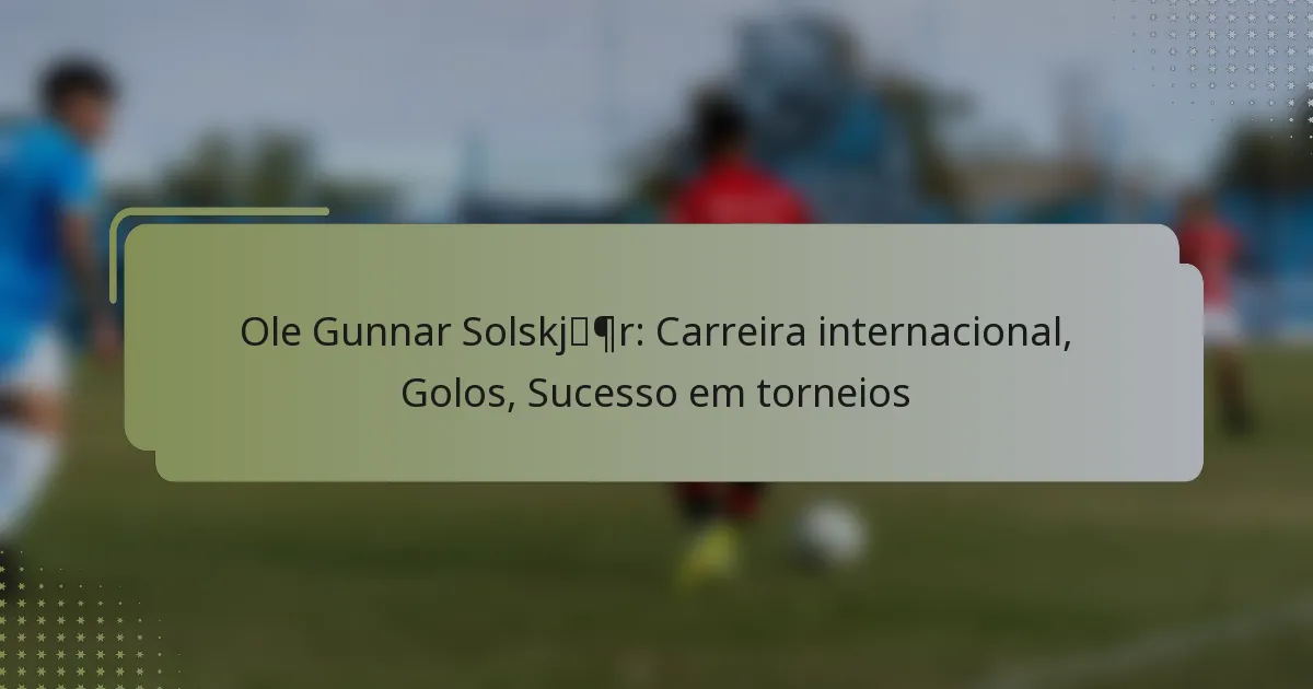 Ole Gunnar Solskjær teve uma carreira internacional notável com a Noruega, participando em torneios chave e contribuindo para os esforços da seleção em várias competições. O seu envolvimento abrangeu os Campeonatos Europeus da UEFA e as eliminatórias para a Copa do Mundo da FIFA, onde demonstrou as suas habilidades e ajudou a elevar a presença da Noruega no palco internacional.